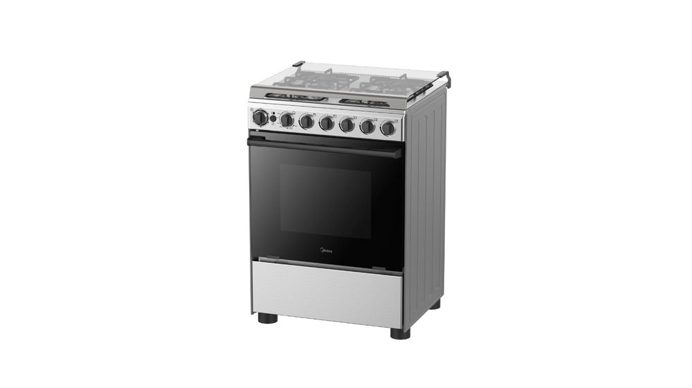 فرن غاز ميديا 4 عيون 60×60 سطح استيل جوانب سلفر