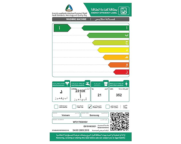 - غسالة اوتوماتيك فتحة امامية سامسونج 21 كيلو اسود واي فاي (فيتنام)
