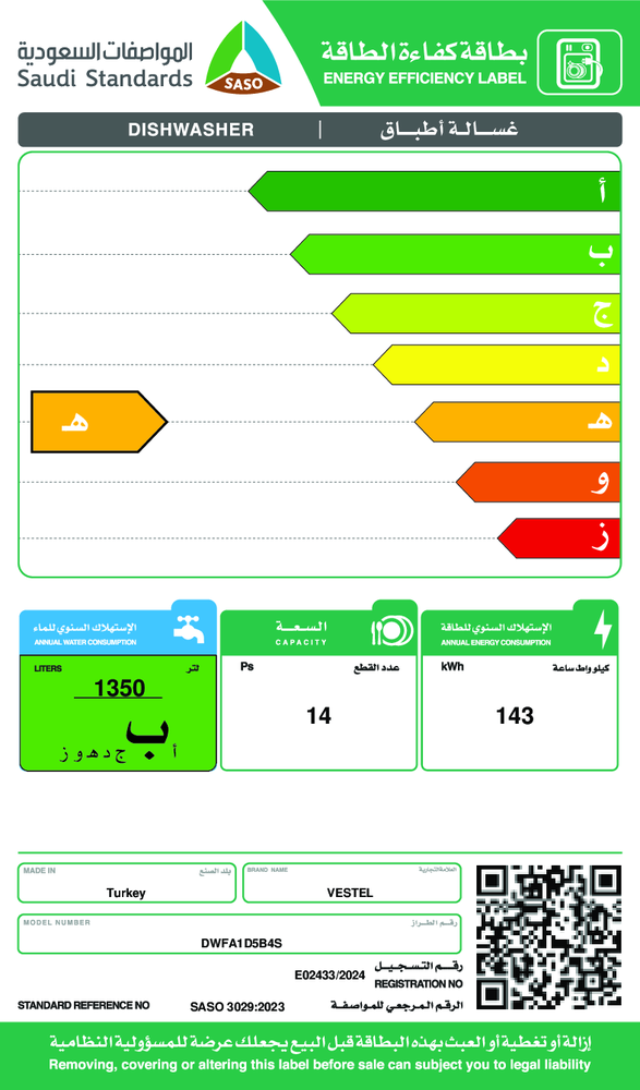 - غسالة صحون فيستل 14 مكان تخزين 5 برامج سلفر (تركي)