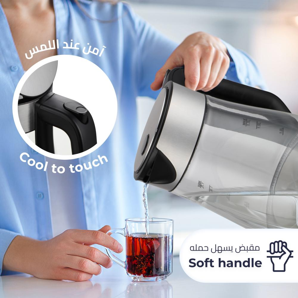 غلاية مياه كيون 1.7 لتر 2200 واط زجاج مع مؤشر LED