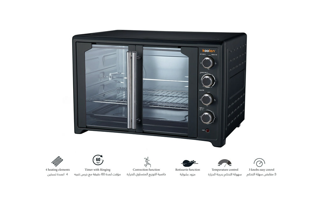 فرن كهربائي كولين 75 لتر 2.800 واط 2 باب اسود