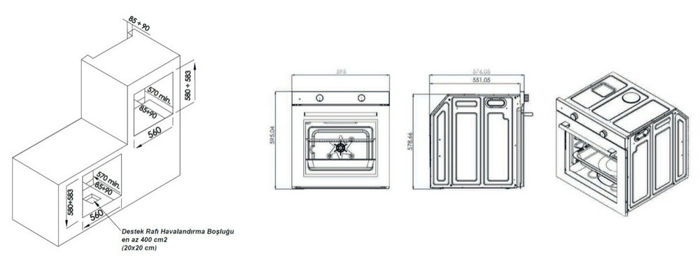 فرن بلت ان كهرباء كلفنيتور 60×90 9 وظائف استيل