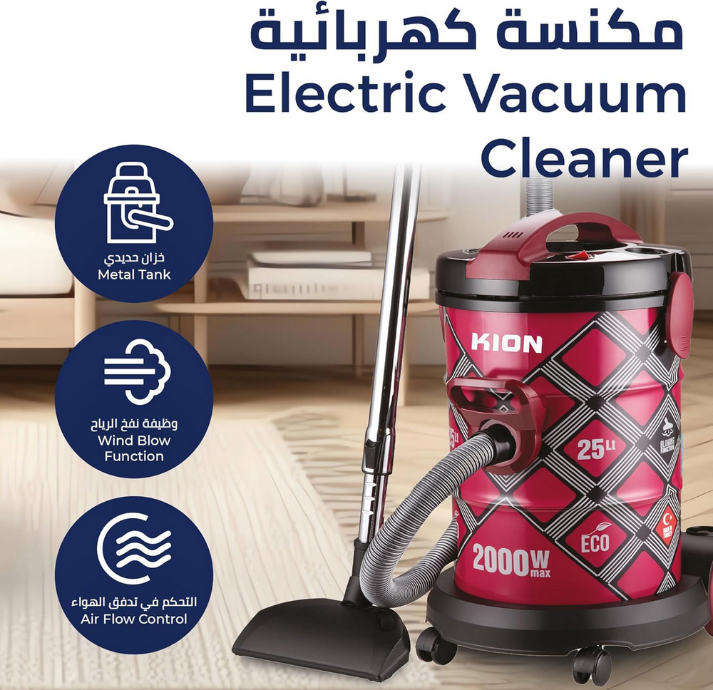 مكنسة برميل كيون 25 لتر 2.000 واط (تركي) أحمر