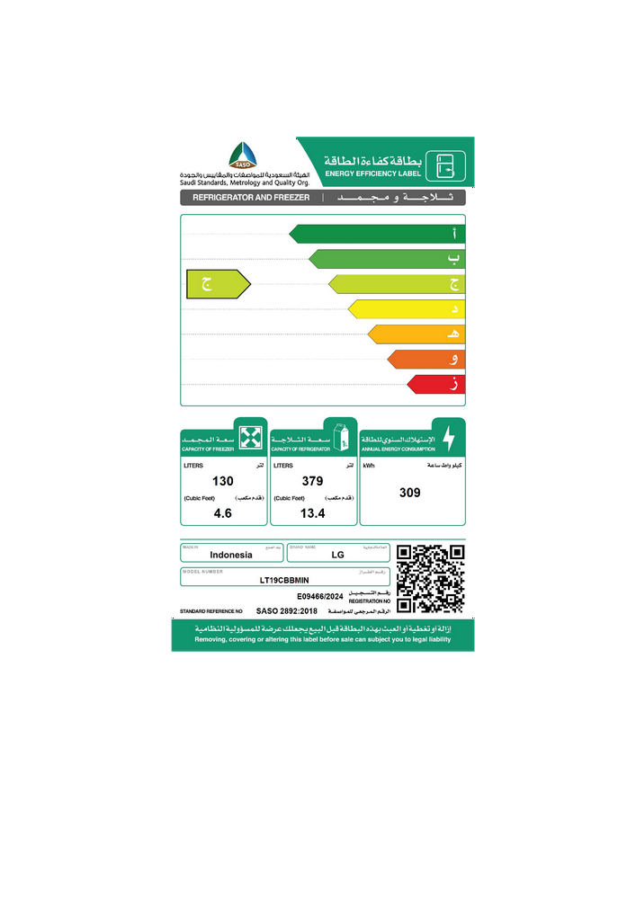 ثلاجة ال جي سعة الثلاجة 13.4 قدم سعة المجمد 4.6 قدم اسود انفرتر( اندونيسيي)