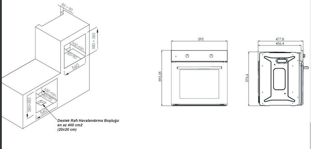 فرن بلت ان كهرباء كوميتل 60 سم 8 وظائف لوحة تحكم استيل مفاتيح اسود (تركي)